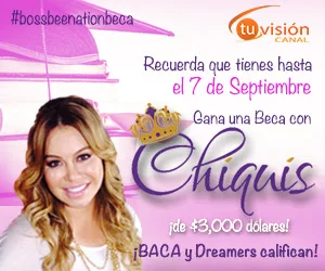 Chiquis y Boss Bee Nation quieren ofrecer a la comunidad de estudiantes la oportunidad de ganar una beca a través del concurso de Tu Visión Canal "Gana una Beca con Chiquis". Lo único que tienes que hacer es compartir un video de tres minutos en la plataforma de tuvisioncanal.com y así podrás tener la oportunidad de ganar la beca de $3,000 dólares. El video debe ser por lo menos 50% en español y debe contestar las siguientes 3 preguntas: