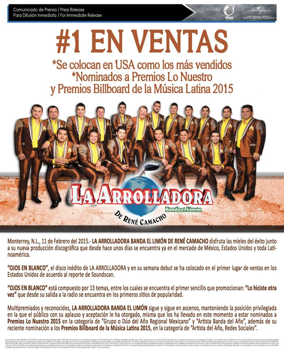 LA ARROLLADORA Disfruta nominaciones y su #1 en ventas. View fullsize Adquiérelo en Amazon: http://amzn.to/1zNtJRqAdquiérelo en iTunes: http://bit.ly/1zxBxoJ http://www.laarrolladora.com.mx/portal/http://twitter.com/arrolladorahttps://www.facebook.com/arrolladoraoficialhttp://www.radioarrolladora.com/ View fullsize EspectaculosAlDiaFebruary 12, 2015FarandulaComment Facebook0 Twitter LinkedIn0 0 Likes