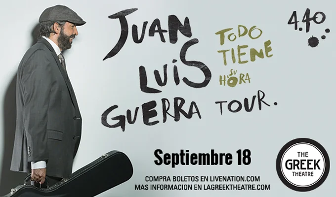 Juan Luis Guerra en el Greek Theater Septiembre 18, 2016 View fullsize Boletos en Livenation.com EspectaculosAlDiaSeptember 12, 2016Conciertos y Eventos Facebook0 Twitter LinkedIn0 Pinterest0 0 Likes