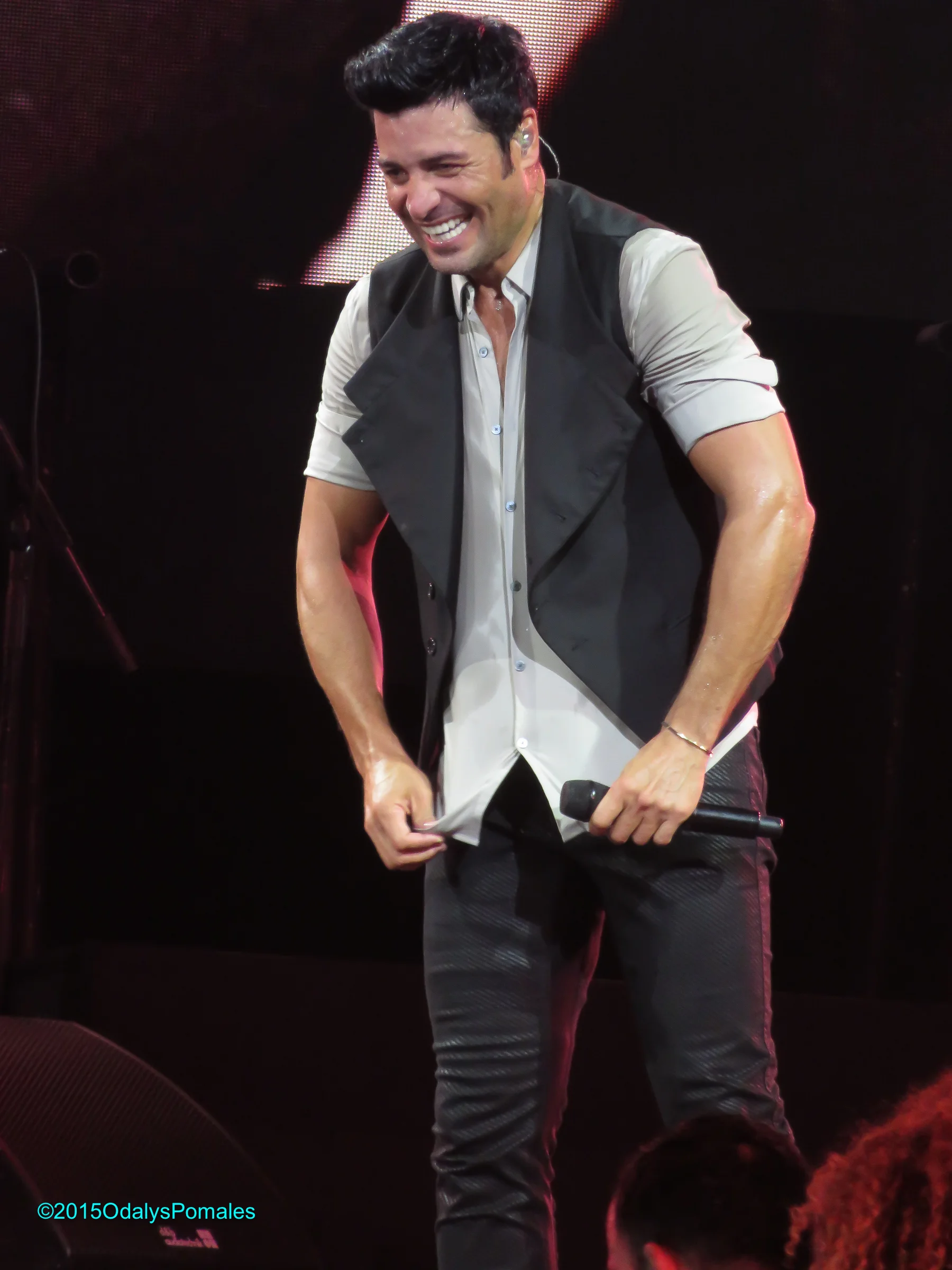 Bueno, como muchos de ustedes saben, yo uso bastón para caminar, y les tengo que confesar que tuve que soltarlo para poder bailar a gusto, aunque ahora resiento mi rodilla, pero todo vale la pena. Me divertí como veinteañera con el tremendo Chayanne.