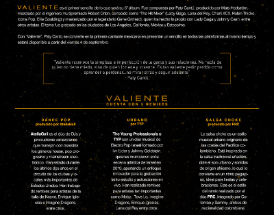 PATY CANTÚ #1 EN LA LISTA POP DE MÉXICO CON SU MÁS RECIENTE SENCILLO "VALIENTE" EspectaculosAlDiaDecember 1, 2015FarandulaComment Facebook0 Twitter LinkedIn0 Pinterest0 0 Likes