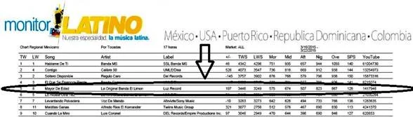Los Ángeles, Ca (24 de Marzo de 2015).- Una vez más la calidad se ha impuesto con LA ORIGINAL BANDA EL LIMÓN DE SALVADOR LIZÁRRAGA que esta semana aparece en el TOP # 5 con el tema “MAYOR DE EDAD”, esto de acuerdo a las listas de éxitos que emite la agencia Monitor Latino