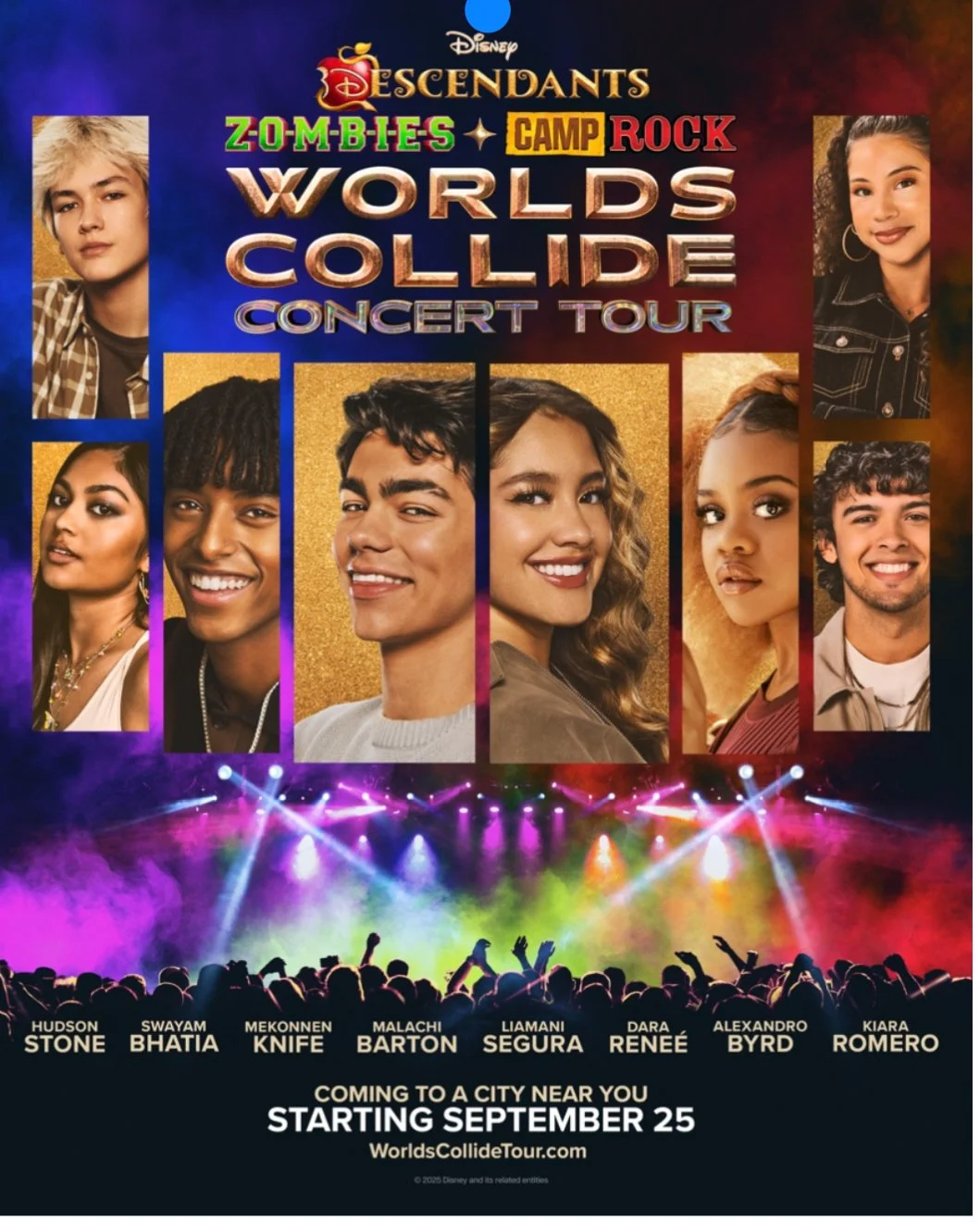 The 2026 tour builds on that momentum. The all-new “Worlds Collide Concert Tour” brings together the worlds of “Descendants,” “ZOMBIES,” and for the very first time, “Camp Rock,” in an unforgettable new arena spectacular. A pop concert of the highest caliber, this year’s cast features an exceptionally talented lineup of Disney stars including Malachi Barton (“ZOMBIES 4,” “Camp Rock 3”), Liamani Segura (“Descendants: Wicked Wonderland,” “Camp Rock 3”), Dara Reneé (“Descendants: The Rise of Red”), Mekonnen Knife (“ZOMBIES 4”), Hudson Stone (“Camp Rock 3”), Swayam Bhatia (“ZOMBIES 4”), Kiara Romero (“Descendants: Wicked Wonderland”), and Alexandro Byrd (“Descendants: Wicked Wonderland”). Fans will experience an evening packed with hit songs from all three franchises brought together in a brand-new production with fresh mashups and fan favorite songs. Next-level choreography and electrifying special effects create an evening filled with nonstop delight, fan interactions, and nostalgia. Come dressed as your favorite character, sing along all night, and experience the music and moments from “Descendants,” “ZOMBIES” and “Camp Rock” colliding on stage in this all-new concert experience.